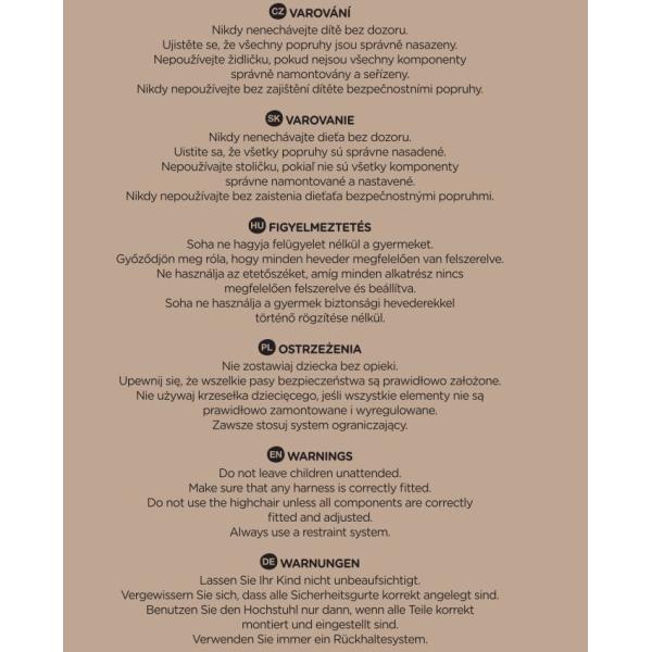 Navzdory kompaktním rozměrům je židle vybavena prostorným prošívaným sedadlem z PU, 3-bodovými bezpečnostními pásy, odnímatelným podnosem a nastavitelnou opěrkou nohou. Když vaše dítě dojí, židle se během několika sekund bez námahy složí.