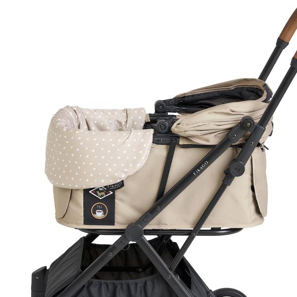 Oboustranný design pro všestranné použití. Podložka se připevňuje k kočárku pomocí magnetů.
