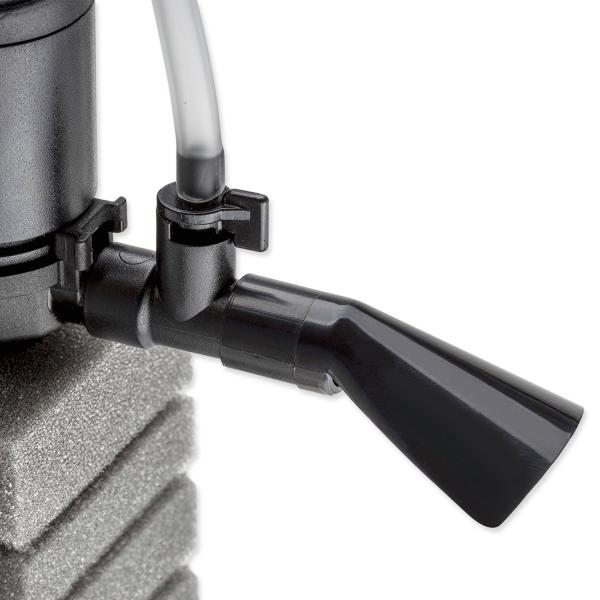 Filtr je také vybaven směrovou koncovkou, která se stará o nasměrování průtoku vody podle vlastních preferencí. Můžete omezit proud vody v akváriu nasměrováním např. na stěnu nádrže nebo mělkou pod vodou, aby se vytvořilo její vlnění.