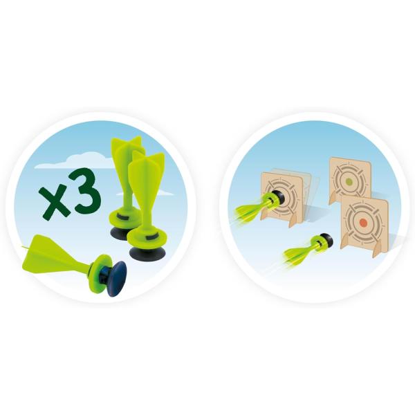 Obsah balení: Součástí balení jsou 3 bezpečnostní šipky a 3 kartonové terče, které poskytují dostatek příležitostí na cílenou zábavu a trénink.