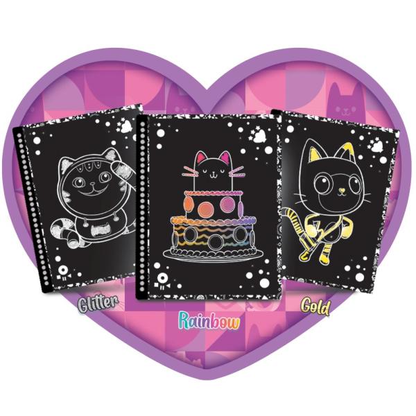 Bavte se při vybarvování a zdobení všech obrázků škrábáním černého povrchu a objevováním množství živých a barevných efektů. Vhodné od 4 let.