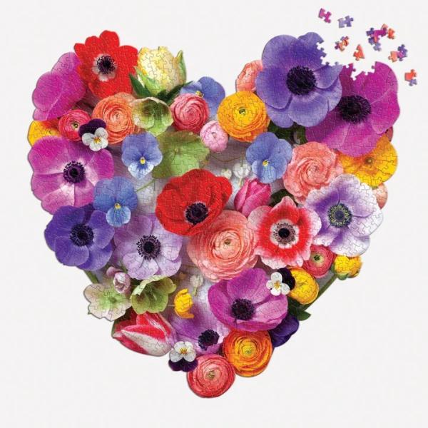 Puzzle nabízí krásné květiny uspořádané do tvaru barevného srdce od umělkyně Julie Seabrook Ream. Puzzle je baleno v pevném obalu, na opětovné použití a skladování. Ideální jako dárek.