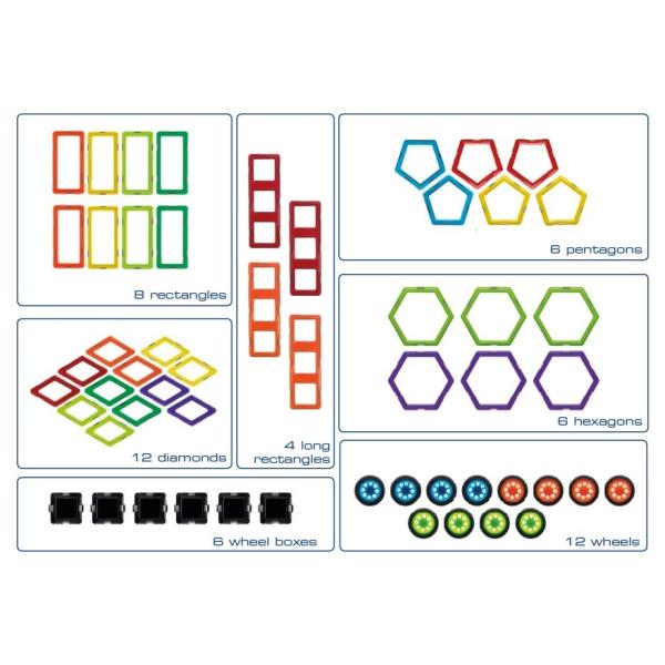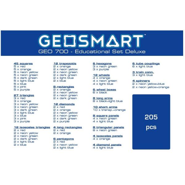 Ideální magnetická stavebnice umožňuje dětem skvělou zábavu jak doma, tak ve školkách. Díky pestrým barvám, silným magnetům a patentovanému dvojitému bezpečnostnímu systému nabízí Geosmart nepřekonatelnou bezpečnost a dlouhou životnost pro dětskou tvůrčí hru. Všechny sady stavebnice Geosmart jsou kompatibilní. Každý dílek obsahuje magnety, které jsou chráněny dvojitým bezpečnostním systémem. Dílky mají různé tvary v zářivých pestrých barvách. Díky tomu mohou děti vytvářet nekonečné kombinace a dát tak průchod své dětské představivosti. Hra s touto stavebnicí je pro děti velmi přínosná. Pomáhá rozvíjet prostorovou představivost, koordinaci ruky a oka, koncentraci, logické myšlení a kreativitu. Stavebnice je hračka vhodná pro děti od 3 let.