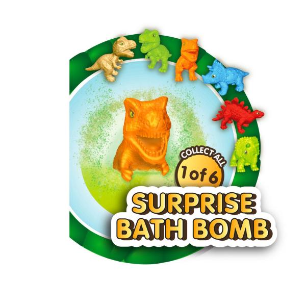 Šumivé vodní bomby ve třech barvách (modrá, zelená, oranžová) s překvapením – v šumivé kouli se skrývá jeden ze 6 dinosaurů.