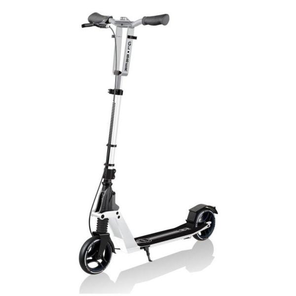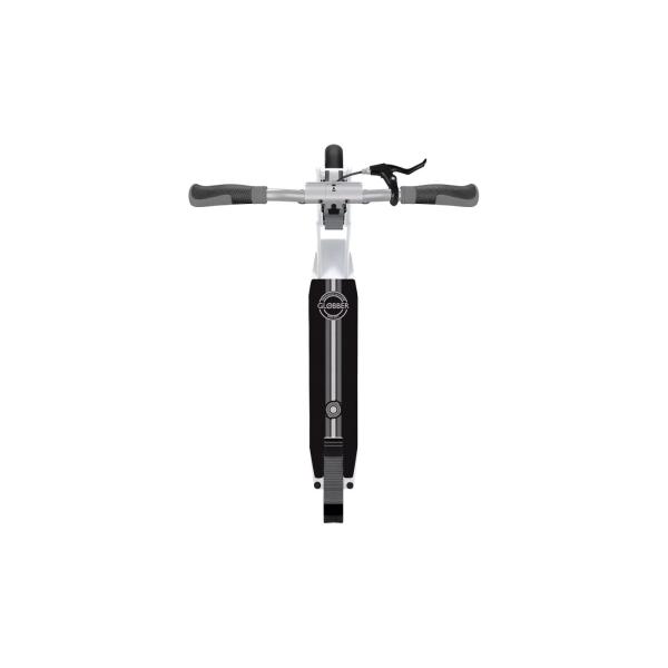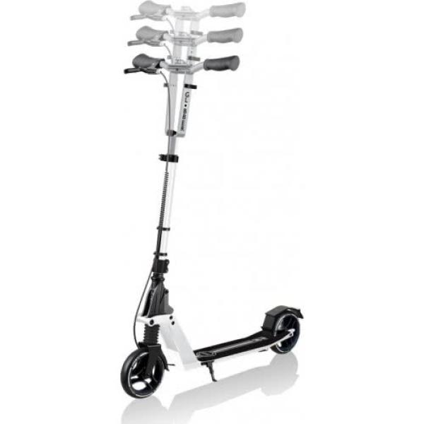Koloběžka se 3 výškovými nastaveními je vybavena mimořádně širokou zakřivenou hliníkovou tyčí T, sloupkem z masivního hliníku o průměru 33 mm a sklopnými hliníkovými řídítky s dvoubarevnými ergonomickými úchyty TPR a protiotřesovou svorkou.