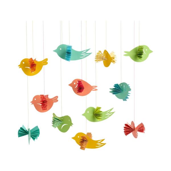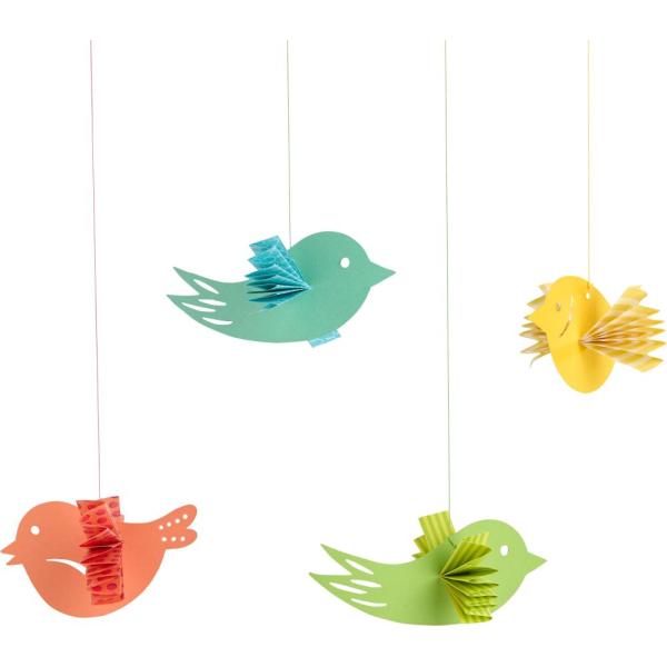 Jednoduše odstraňte ptáčky z předem nařezaného fotografického kartonu a poté složte barevné papírové listy podél čar. Křídla jsou vytvořena okamžitě a snadno se protáhnou přes břicho ptáka a poté se rozvinou jako vějíř. Dekorace do každé místnosti!