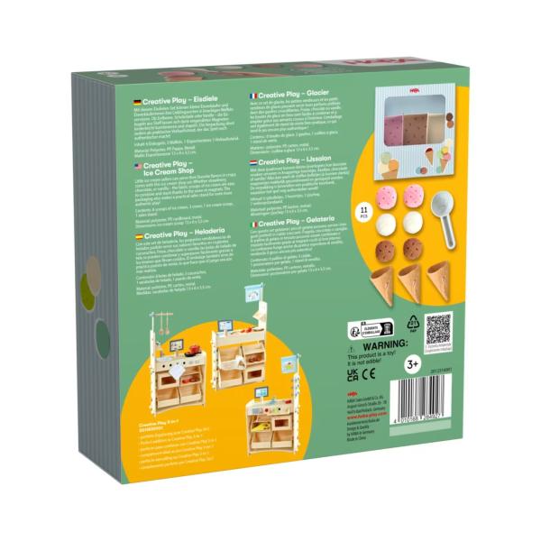 Sada Zmrzlinárna je dokonalým dílem kreativního hraní pro děti. Malí zmrzlináři a zmrzlinářky mohou servírovat své oblíbené druhy zmrzliny v křupavých kornoutech a experimentovat s chutami a barvami.