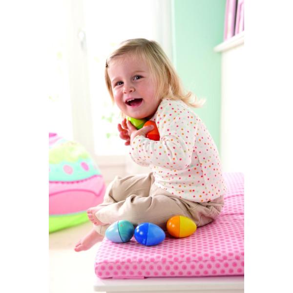 Co to tedy bude… klapání, ťukání nebo cinkání? Každé hudební vajíčko vydává jiný zvuk. Když zatřesete jedním nebo dvěma, postarají se o hodiny rytmické zábavy. Tvorba hudby se stává dětskou hrou.