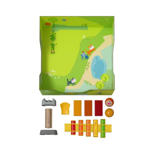 Speciálním zážitkem je zvuk, který vydává kulička při projíždění hrkavou zatáčkou a při klouzání dolů zvukovou schodnicí.