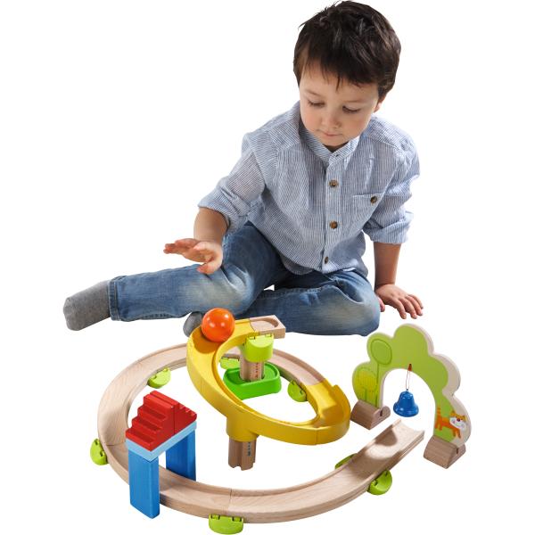 Špirálová dráha kuličkové dráhy Kullerbü od Haba dělá čest svému jménu! Hned několik zatáček se postará o extra porci spirálové zábavy.