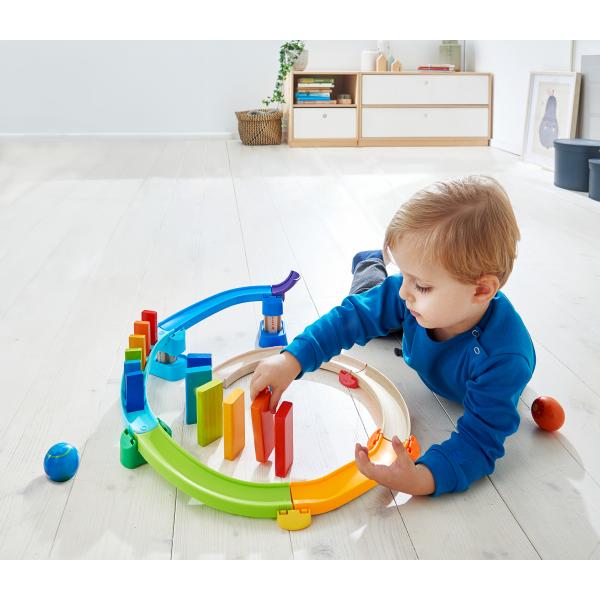 Zatímco ti úplně nejmenší milují objevování kuliček a s úžasem je sledují, jak se kutálejí, ti starší pomáhají s vybíráním dílků a jejich skládáním. Postupem času se z jedné rovné dráhy stane složitá dráha. Hrkající zatáčky, zvonkové tunely a další prvky poskytují extra zábavu.