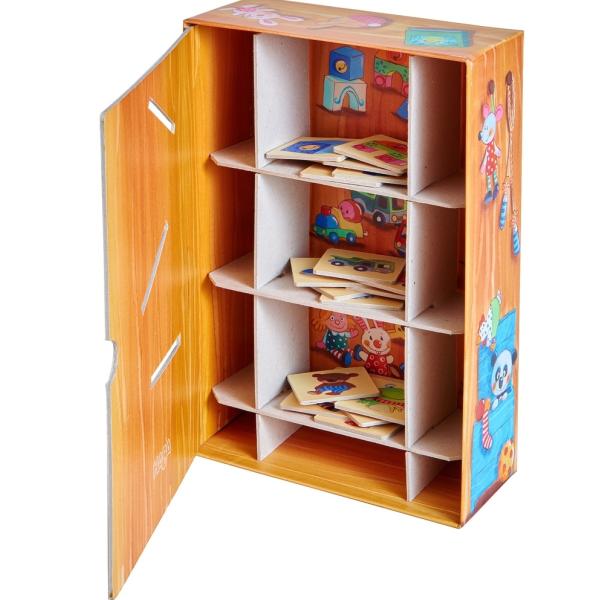 Malý kocourek Tiptop si hraje celý den. Teď je čas na úklid! Ale kam umístit jednotlivé kartičky? Kde patří hasičská stanice? A kam žirafa? Povídejte si s dítětem, kde obrázek na kartičce patří, a pak požádejte dítě, aby vložilo kartičku do správného přihrádky.