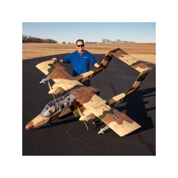 Charakteristika:Obří dvoumotorová RC maketa vojenského letadla OV-10 Bronco má rozpětí více než 2,7 m, kompletní povrchovou úpravu, kabinu s kokpitem a makety zbraní. K pohonu lze zvolit jak spalovací motory 30-35 ccm, tak elektromotory. Výborné letové vlastnosti a realistický let. Příslušenství k montáži spalovacího motoru a elektromotoru. V balení je kompletní zatahovací podvozek.