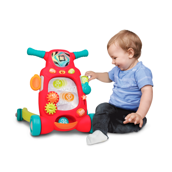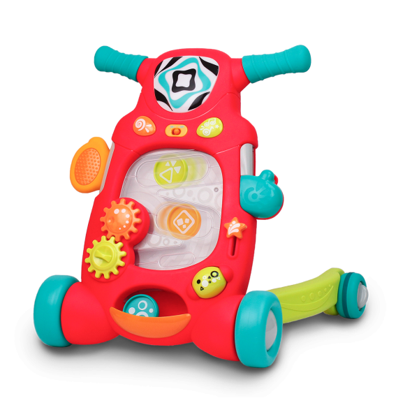 Toto interaktivní chodítko podporuje rozvoj hrubé motoriky, rovnováhy a prvních kroků. Zároveň panel s aktivitami rozvíjí jemnou motoriku, smyslové vnímání a učí příčiny a následky prostřednictvím interaktivních prvků.