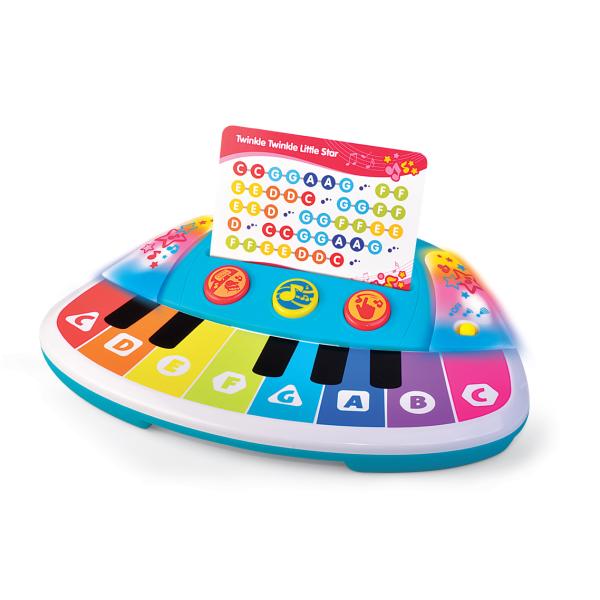 Vytvořte si vlastní kompozice a hrajte slavné melodie s barevným klavírem. Každá barevná klávesa odpovídá jinému tónu stupnice a přiložené notové karty vám umožňují hrát až 12 oblíbených melodií. Klavír má 3 režimy: základní, ve kterém můžeme na hračce hrát jako na klasickém klavíru nebo xylofonu, režim přehrávání melodie, ve kterém můžeme skladby rozšiřovat hraním na klávesnici, a režim zvukové zábavy. Hru na klavíru doprovázejí barevná světla, která dělají zábavu atraktivnější a ještě příjemnější.