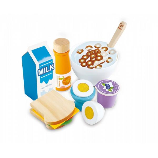 Tato nádherná hrací sada HAPE pomáhá dětem seznámit se se snídaní a inspiruje je k rozvoji zdravých stravovacích návyků. Povzbuďte v dětech zvědavost a nechte je rozvíjet jejich představivost, jazykové a sociální dovednosti hraním s touto nejkvalitnější realistickou sadou! Zkombinujte tuto sadu s dalšími potravinovými sadami a vytvořte zábavné hody. Hračka pomáhá s rozvojem jemné motoriky a koordinace ruka-oko. Pásky se suchým zipem na jogurtu vydávají při zvedání křupavý zvuk a víčko láhve s džusem zacvakne, když jím otočíte. Sada zdravé snídaně zahrnuje jogurt, mléko, pomerančový džus, vejce s kalíškem na vejce, sendvič a má realistickou misku ovesných vloček s dřevěnou lžící. Rozměr balení: 30,5 x 7,5 x 24,5 cm. Věk: 3+
