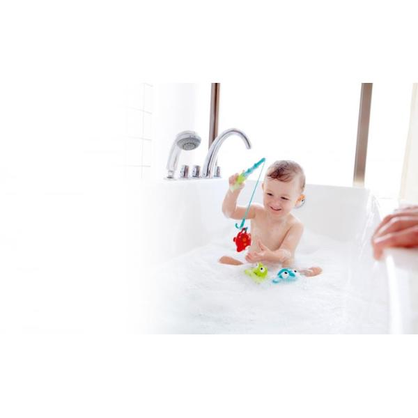 Děti milují koupání. Malí rybáři budou nadšeni! Chyť pomocí rybářského prutu plovoucí rybičky a žabičky a pak si je schovej Rozměr balení: 34,2 x 24 x 6,5 cm.