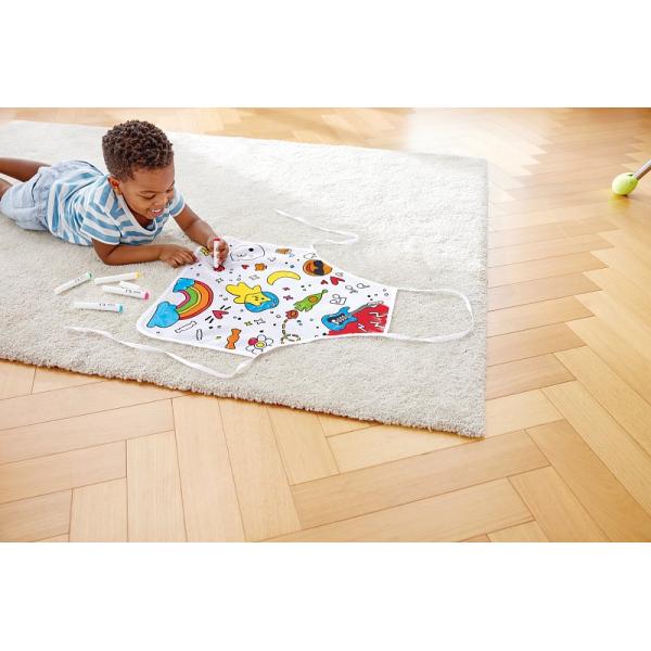 Vytvořte si svou vlastní mistrovskou zástěru, kterou budete používat znovu a znovu, když je čas na kreativitu. Díky zábavným, dětem přátelským designům – jako jsou duhy, raketoplány a noty – mohou děti vymýšlet své vlastní příběhy a zároveň doplňovat tvary svými oblíbenými barvami.Tato zástěra je dodávána se sadou šesti fixů: zelená, červená, žlutá, oranžová, modrá a černá. Zástěra je voděodolná, aby chránila umělecká díla vašeho dítěte před skvrnami a politím.