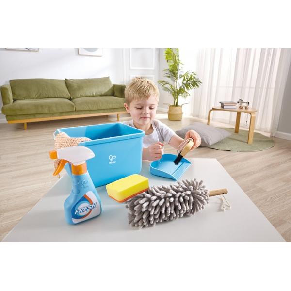 Hape Souprava na úklid – skvělá hračka pro rozvoj jemné motoriky a jazykových dovedností. Dětem se bude líbit úklid jako velká zábava!