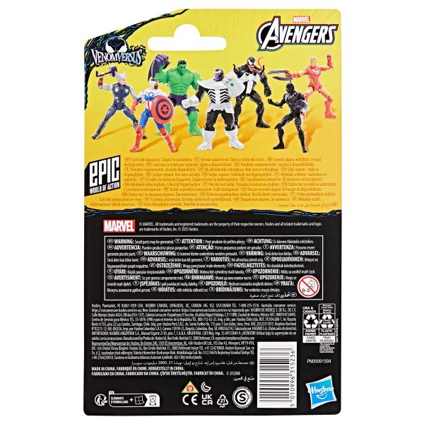 Děti si s těmito hračkami Avengers dokážou představit svého oblíbeného marvelovského superhrdinu, jak se vrhá do dobrodružství. Superhrdinové Marvelu využívají síly symbiontů k boji proti zlému mimozemšťanovi Venomovi a jeho hordě Venomizovaných zloduchů. Tato sběratelská akční figurka Marvel Kapitán Amerika – Anti-Venom, je součástí exkluzivní série Hasbro Epic World of Action a vyznačuje se klasickým designem a dekoracemi, stejně jako polohovatelnými končetinami. Součástí je také Venomized štít pro dobrodružství poháněná symbiony. Tato 10 cm vysoká figurka s prvotřídním detailním designem a 9 kloubovými body bude perfektním dárkem pro děti nebo doplňkem jakékoli sbírky figurek superhrdinů. Vyrobeno z kvalitního plastu. Obsah balení: Figurka a štít. Balené v blistru. Rozměry balení: 20,3 x 12,7 x 3,2 cm. Věk: 4+