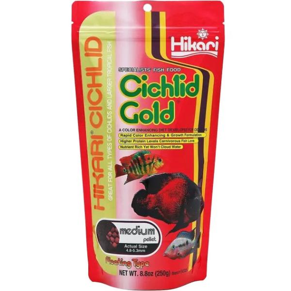 2. Hikari Cichlid Gold je vynikající strava pro větší tropické ryby, jejichž zbarvení se „vymilo“ nebo potřebují větší přísun bílkovin. Můžete očekávat vynikající tempo růstu ryb!