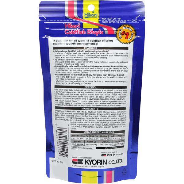 Rozsáhlý výzkum stravovacích návyků a životních podmínek mladých zlatých rybiček a KOI nám poskytl znalosti pro vyvinutí krmiva Hikari Staple baby pellet. Toto hospodárné každodenní krmivo pro zlaté rybky a KOI poskytuje těmto rybám základní živiny, které potřebují, aby mohly dlouho a zdravě žít.