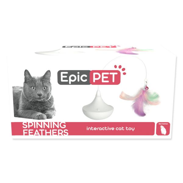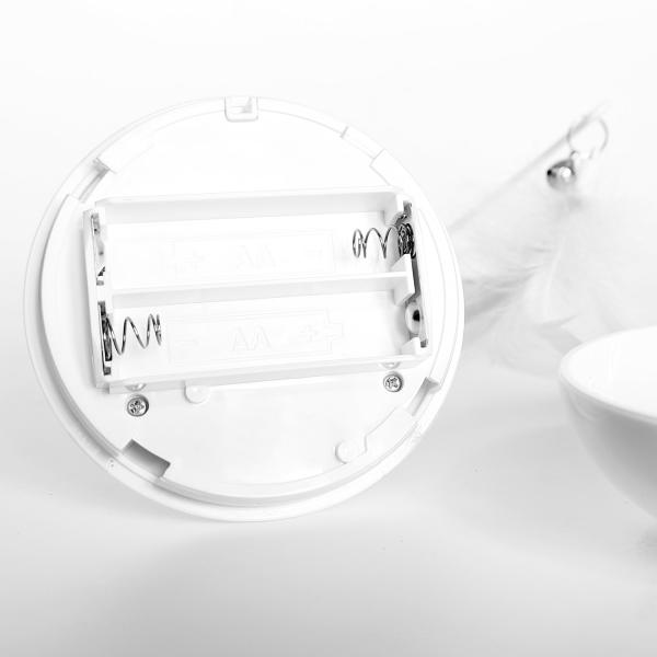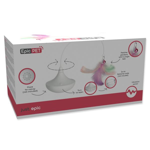 Interaktivní hračka pro kočky. Otáčející se základna pro kočky s atraktivním třepajícím se přívěskem z peří, který svým materiálem a pohybem v kočkách podporuje jejich přirozené lovecké instinkty . Přívěsek na hračce se otáčí a třepotá v různých intervalech. Tím u koček zvyšuje zájem o hru. Do spodní perforované části je možno vložit catnip (kocourník) pro zvýšení atraktivity hračky. Velikost: 8 cm Baterie nejsou součástí balení.