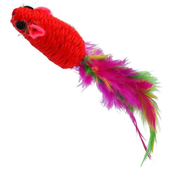Bavlněná myška s peřím. Hračka, které vaše kočka neodolá. Peří láká k aktivní hře. Velikost: 6 cm