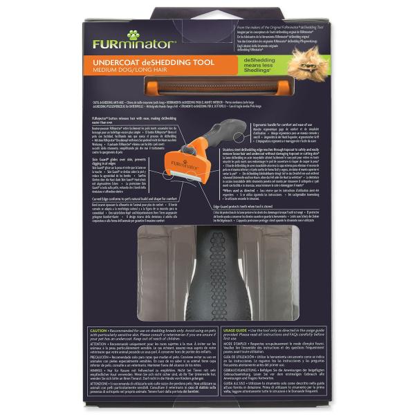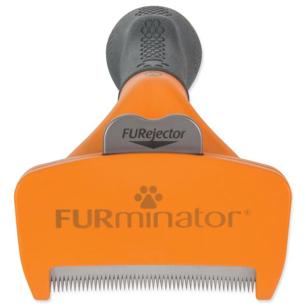 FURminator® hřeben pro vyčesávání podsady pro psy středních plemen o hmotnosti do 9-23 kg s dlouhou srstí. Odstraňuje až 99% uvolněných chlupů. Pomáhá také redukovat tvorbu chlupových bezoárů. Používejte na suchou srst jednou či dvakrát týdně po dobu 10 až 20 minut. Vyčesávací hrana z nerezové oceli proniká hluboko do srsti zvířete, kde šetrně a snadno odstraňuje uvolněné chlupy z podsady, aniž by poranila kůži nebo poškodila srst. Ochranný kryt po kůži hladce klouže a brání tomu, aby se okraje vyčesávací hrany zabodávaly do kůže. Zakřivená hrana kopíruje přirozený tvar a stavbu těla zvířete, čímž se vyčesávání stává příjemnějším. Tlačítko FURejector® vyčesanou srst snadno uvolní a vyčesávání je díky tomu jednodušší než kdykoli předtím. Ochranná hrana chrání zuby, když se hrábě nepoužívá.