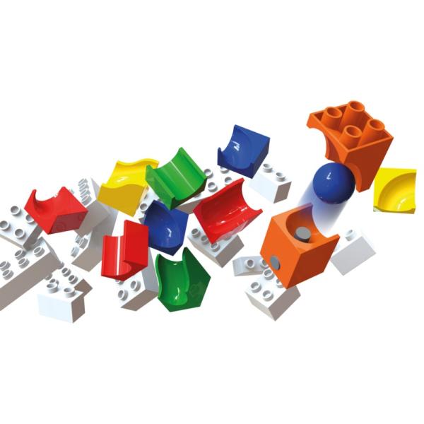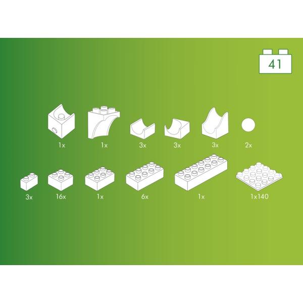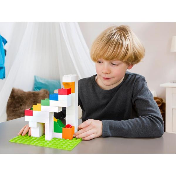 HUBELINO rozšíření s katapultem – 41 dílů Udělejte dětem radost a pořiďte jim rozšíření kuličkové dráhy. S kuličkovou dráhou HUBELINO si užijete spoustu zábavy. Tento set vám pomůže vytvořit ještě větší dráhu. Tak popusťte své fantazie a nechte se unášet na vlnách Hubelina. Dílky stavebnice jsou kompatibilní s kostkami LEGO Duplo. Je vyrobena z kvalitního a ekologicky šetrného materiálu. Sada obsahuje 41 stavebních dílků včetně 1 základní desky 16 x 22,5 cm, 1 kuličky a dvou katapultů pro vystřelení kuličky do dráhy. Vhodné pro děti od 3 let.