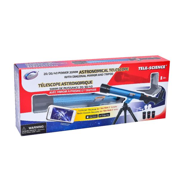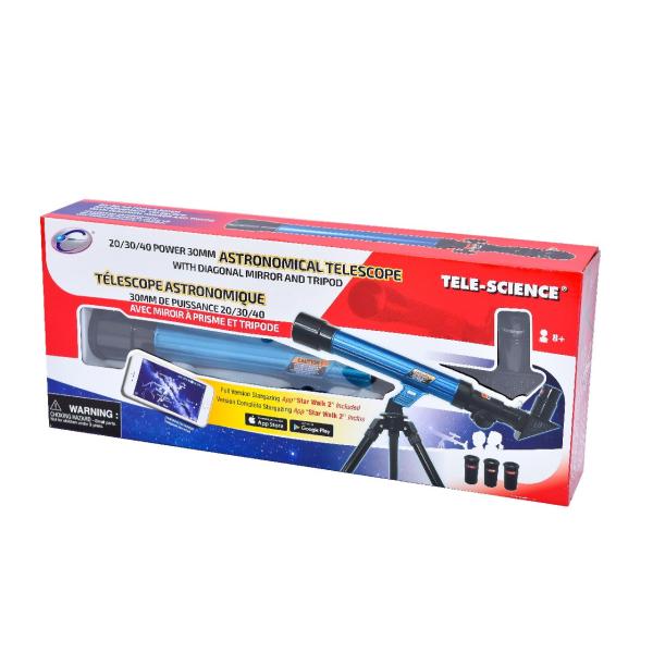 Pomocí tohoto teleskopu můžeš pozorovat noční oblohu. Součástí je také kód do mobilní aplikace, která ti pomůže pojmenovat všechny hvězdy na obloze Vhodné pro děti od 8 let