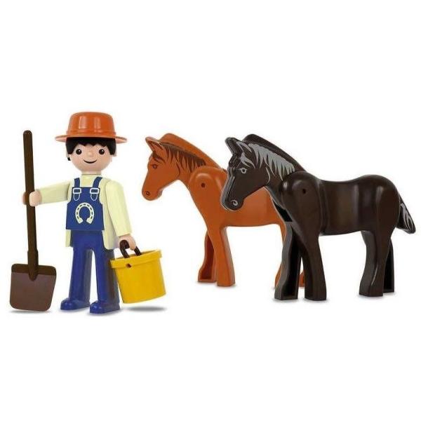 Farmář a jeho krásní koníci si spokojeně žijí na své farmě. Mají se ale co otáčet. Koníci potřebují nakrmit. Za odměnu farmáři pomohou vytáhnout dřevo z lesa. Herní set obsahuje figurku Igráčka, dva koníky, lopatu a kbelík. Díky malým rozměrům je hračka snadno přenosná a můžeš si ji vzít všude s sebou. Výška panáčka: 8 cm.