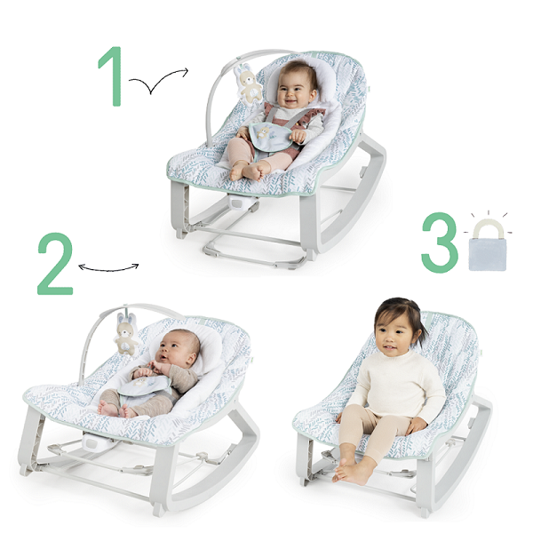 Húpatko Ingenuity Keep Cozy 3 v 1 roste s vaším dítětem a je navrženo tak, abyste si ho užili několik let. Vyberte si mezi jemným kýváním, houpáním nebo stacionárním lehátkem a později křesílkem, které bude dítě milovat. Uklidňující vibrace, dvě polohy naklonění a odnímatelná vložka zajišťují maximální pocit pohodlí a bezpečí. Jak vaše dítě roste, dětské křesílko se určitě stane oblíbeným a pohodlným místem k odpočinku nebo hraní. Húpatko obsahuje odnímatelnou hrazdičku se závěsnou hračkou, která poskytuje zábavu během hraní se. Měkký, neutrální, moderní design se hodí do každého interiéru. Vhodné pro kojence a batolata do 18 kg. vlastnosti: zahrnuje 3 režimy: jemné kývání, houpání nebo statické křesílko se zadním zafixovaným stojanem – odnímatelná plyšová opěrka hlavy a novorozenecká vložka uklidňující vibrace na utišení děťátka odnímatelná hrazdička s hračkou polohování sedáku do 2 různých úhlů pro dosažení komfortu zahrnuje 5bodový pás pro vyšší bezpečnost neutrální, moderní design se hodí do každé domácnosti látkové části je možné prát v pračce na jemný cyklus ve studené vodě rozměry výrobku: 65,53 x 51,31 x 53,34 cm vyžaduje se 1x C baterie, která není součástí balení