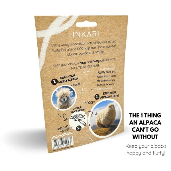 Upravte si alpakou s naší exkluzivní kefou Inkari Grooming Brush, která udrží vaše hračky z alpaky měkké a nadýchané! Stačí pár tahů kartáčem, aby se váš produkt Inkari Alpaca stal novým.