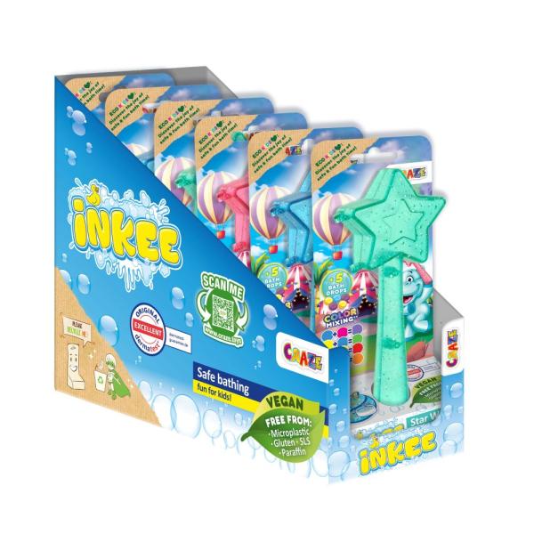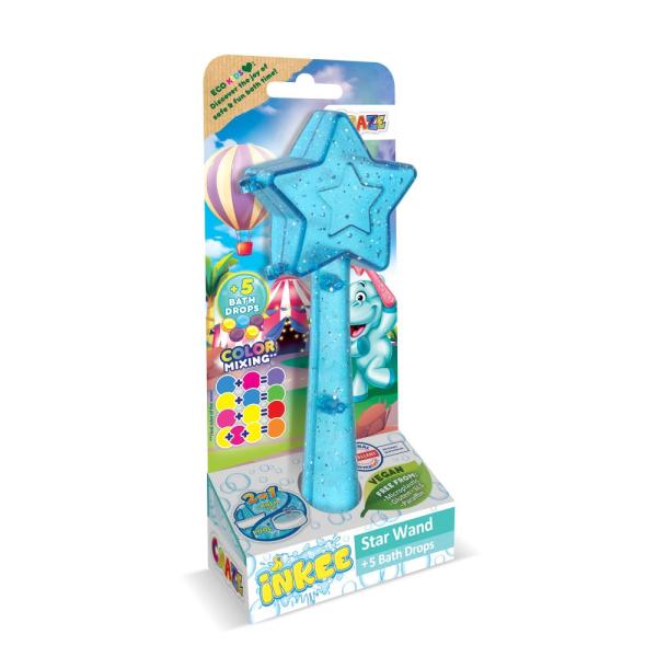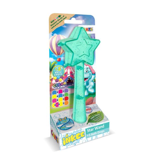 Objevte kouzlo vany s magickou paličkou Inkee Sparkling Drops! S touto hvězdnou hůlkou a barevnými kapkami si vaše dítě užije zábavné a kreativní koupání, které rozvíjí jeho fantazii a motoriku.