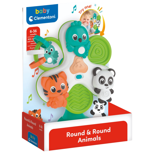 Zábavný kolotoč se zvířátky, který pobaví batolata na vysoké židličce a během jídla. Tři zábavná zvířátka se 3 kroužky a malou vrtulkou na otáčení. Díky přísavce pod podstavcem je možné hračku praktickým a jednoduchým způsobem připevnit ke stolu vysoké židličky.Obsahuje množství melodií a vtipných zvuků, které pobaví batolata a stimulují jejich smysly a koordinaci rukou a očí.