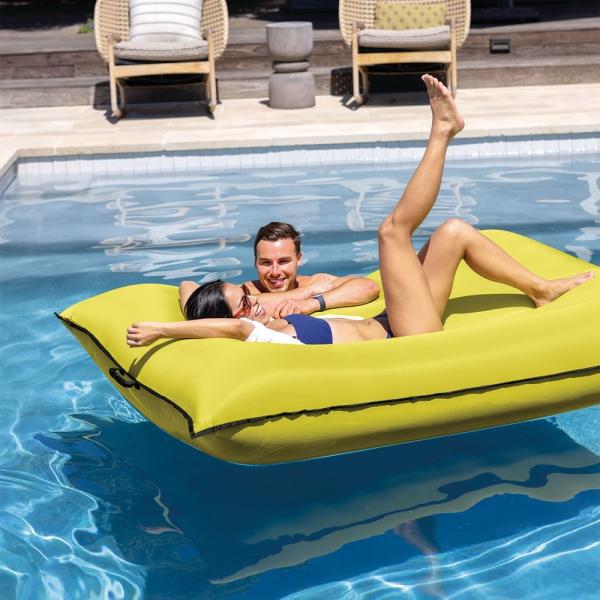 Toto unikátní nafukovací lehátko přináší maximální pohodlí a stylový design pro relaxaci u vody nebo na zahradě. Je navrženo tak, aby napodobňovalo sedací vak, a nabízí velkou plochu pro pohodlné sezení nebo ležení.