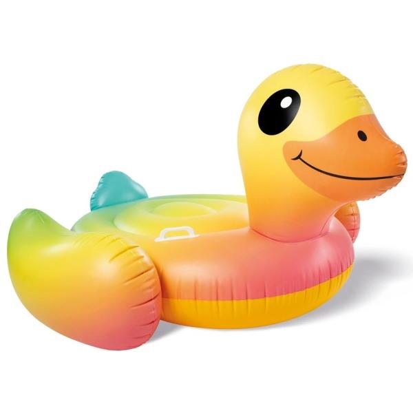 Intex Nafukovací kachna do vody 57556 , výrobce Intex. Nafukovací kachna na hraní nebo vození se ve vodě. S úchyty pro stabilnější uchopení při použití Velkou výhodou je snadné uskladnění a opětovné nafouknutí či vyfouknutí. 2 vzduchové komory S opravnou náplastí Vyrobeno z kvalitního testovaného vinylu Rozměry: 142 x 147 x 81 cm Nafukovací hračky a potřeby Intex splňují nejpřísnější bezpečnostní normy pro zpracování a použité materiály. Pro děti od 3 let