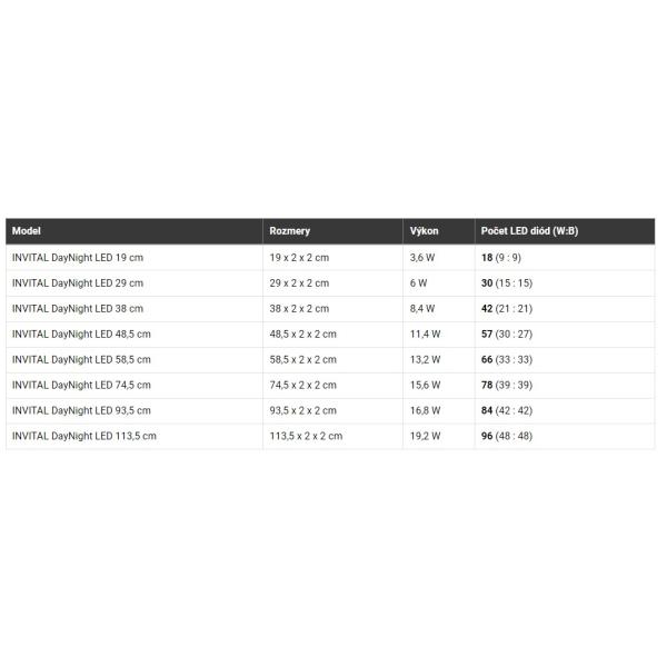 LED trubica INVITAL DayNight je jednou z najobľúbenejších LED svetiel v našom širokom sortimente. Je to kompaktná a veľmi odolná trubica s nočným režimom vhodná pre všetky typy akvárií a terárií. Vďaka jednoduchej inštalácii, dlhej životnosti a nízkej spotrebe ich ocenia začiatočníci aj pokročilí akvaristi.