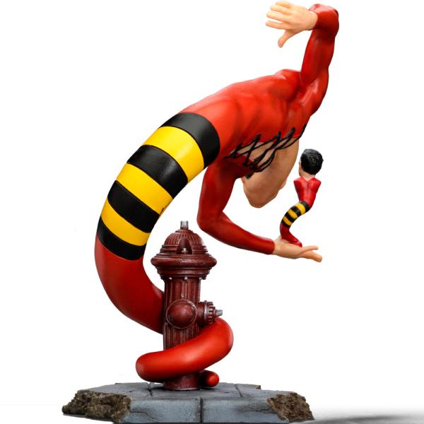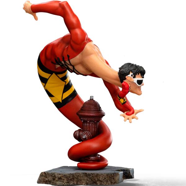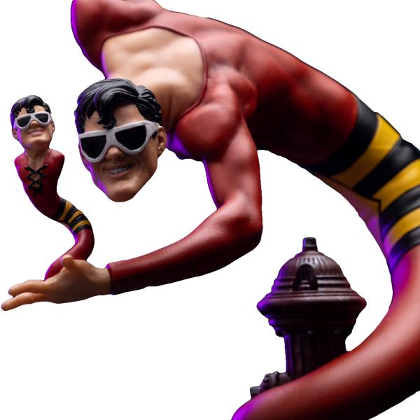 Figurka Plastic Man Exclusive Ver. – DC Comics Series #9 – Art Scale 1/10 od Iron Studios zobrazuje nejhravějšího superhrdinu DC v jeho typickém červeno-žluto-černém kostýmu a s neodmyslitelnými slunečními brýlemi. Plastic Man se ovíjí kolem požárního hydrantu na základně betonového chodníku, natažený jako had, přičemž na dlani levé ruky vytváří miniaturní verzi sebe samého. Postava byla stvořena Jackem Colem v roce 1941 jako jedna z prvních komiksových postav, která do akčního příběhu vnesla humor.