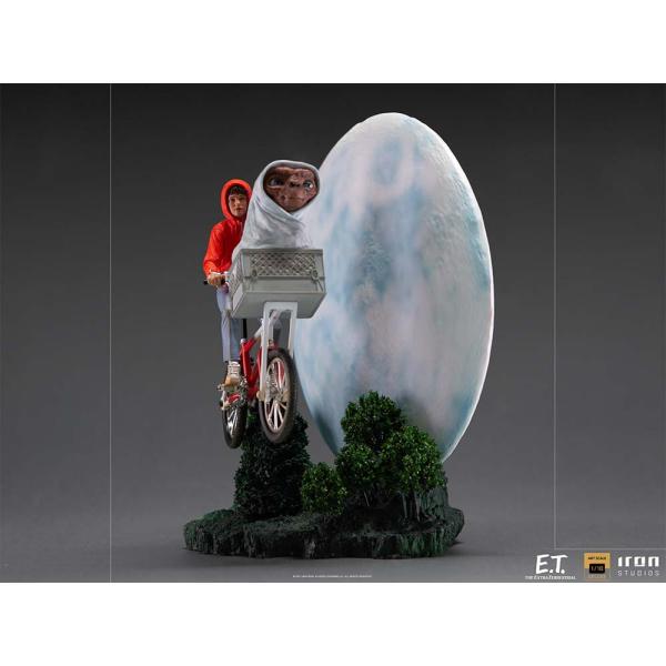 Figurka ET & Elliot – Art Scale 1/10 Deluxe – ET – Iron Studios zachycuje jednu z nejslavnějších scén v historii kinematografie – ikonický let na bicyklu s měsícem v pozadí, který se stal symbolem přátelství mezi chlapcem a mimozemšťanem. Tato scéna se stala také logem produkční společnosti Amblin Entertainment Stevena Spielberga. Figurka představuje debut nové licence Iron Studios a zároveň si připomíná 40. výročí premiéry filmu ET.