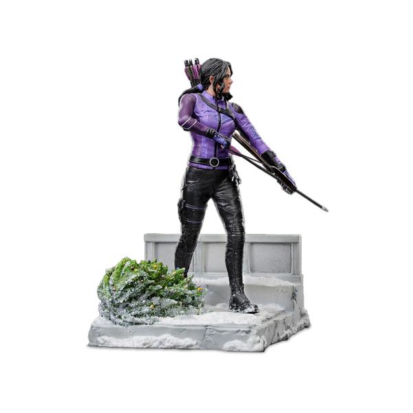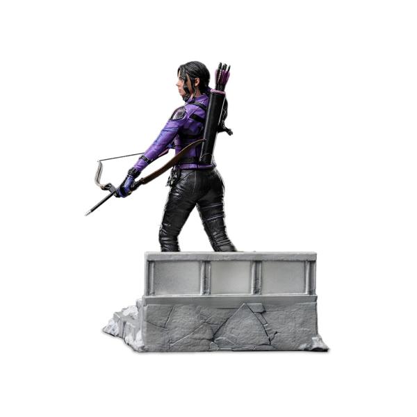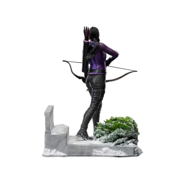 Působivá sběratelská figurka Kate Bishop od společnosti Iron Studios zachycuje mladou talentovanou lukostřelkyni přímo z finální epizody seriálu Hawkeye od Disney+. Postava je ztvárněna v momentě vrcholného boje v Central Plaza, kde s odhodláním čelí skupině zločinců. Kate Bishop je připravena na boj, přičemž v rukou svírá svůj luk a disponuje zásobou speciálních šípů, aby ochránila své město i svého mentora.