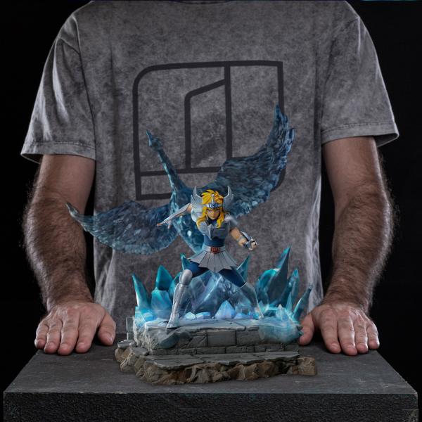 Cygnus Hyoga – Saint Seiya – Art Scale 1/10 je sběratelská socha od značky Iron Studios, zachycující jednoho z nejoblíbenějších Bronzových svatých legendární série Saint Seiya. Hyoga, svatý narozený pod souhvězdím Labutě (Cygnus), disponuje schopností mrazit a ovládat led i sníh, přičemž silou svého Kosmu dokáže zastavit samotné atomy hmoty. Tato socha je první ze série Bronzových svatých, která bude součástí většího diorámy s nejoblíbenějšími postavami seriálu.