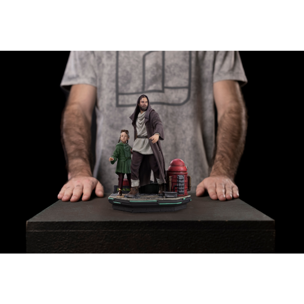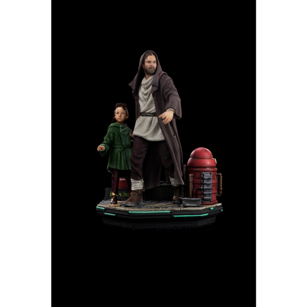 Po chaotických ulicích planety Daiyu, pod světly vysokých budov, zářivými nápisy a pohledy žoldáků a neúprosných agentů Galaktického Impéria, riskuje bývalý statečný Jedi Master odhalení své anonymity, aby za každou cenu splnil své poslání – zachránit mladou princeznu z planety Alderaan a bezpečně ji dovést zpět k jejímu pěstounskému otci. Dioramová figurka Obi-Wan and Young Leia Deluxe – Obi-Wan Kenobi – Art Scale 1/10 od Iron Studios zachycuje oba hrdiny přímo ze spin-off seriálu Star Wars: Obi-Wan Kenobi, vydaného na streamovací službě Disney+ v roce 2022. Figurky vykazují neuvěřitelný realismus a věrnost podobám herců Ewana McGregora (Obi-Wan) a Vivien Lyry Blair (Leia), vytvořeným na základě originálních předloh.