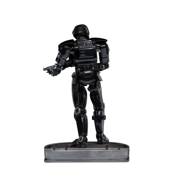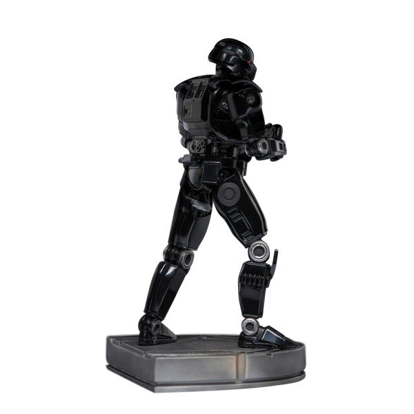 Dark Trooper BDS Art Scale 1/10 – The Mandalorian je sběratelská figurka od Iron Studios zachycující jednoho z nejefektivnějších a nejnebezpečnějších imperiálních bojových droidů. Postava v zářivém černém brnění se nachází na palubě vesmírného křižníku imperiálního důstojníka Moffa Gideona, červené fotoreceptorové oči upřené na cíl, v rukou velká blasterová puška připravená na přesný výstřel. Figurka věrně reprodukuje podobu droidů z druhé série seriálu The Mandalorian na streamovací platformě Disney+.