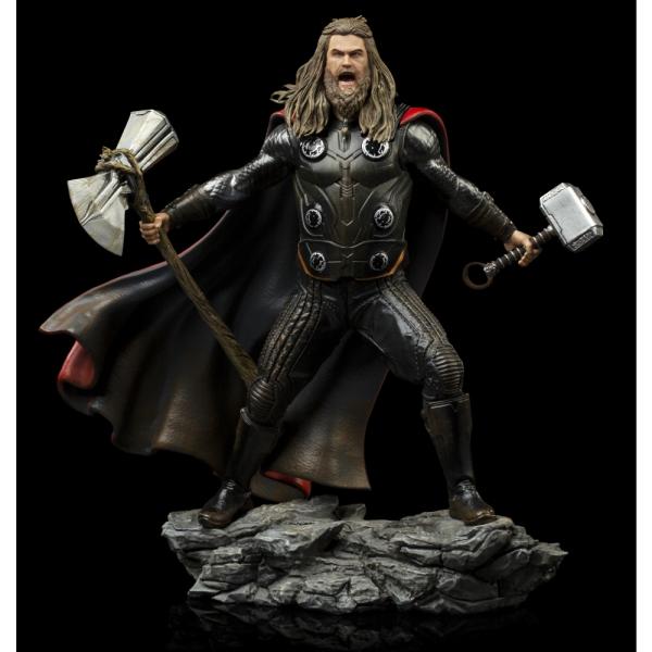 Thor Ultimate BDS Art Scale 1/10 – The Infinity Saga – Iron Studios je prémiová sběratelská figurka zachycující boha hromu Thora v epickém bojovém postoji, přesně jak ho známe z kultovního filmu Avengers: Endgame. Figurku zachycuje syn Odina, znovu ztvárněného australským hercem Chrisem Hemsworthem, jak s zuřivostí bojovníka svírá obě své mystické zbraně – Stormbreaker i Mjölnir. Každý detail je věrnou replikou filmového hrdiny, a to až po ty nejmenší prvky.