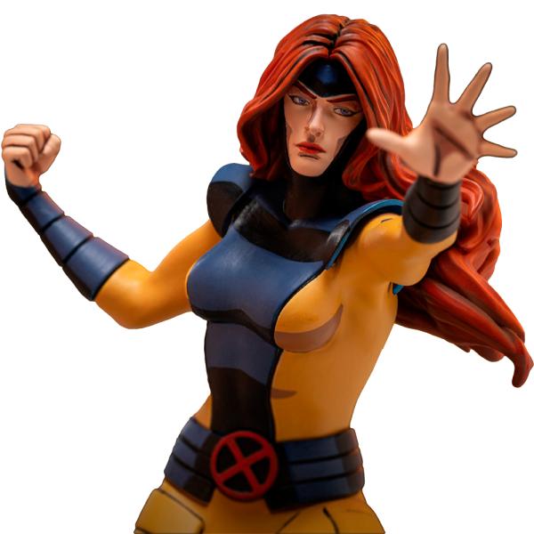 Figurka Jean Grey – X-Men ’97 – Art Scale 1/10 od Iron Studios zachycuje první X-Women hrdinku vznášející se díky své telekinetické mutantské síle. Jean Grey vystírá levou ruku soustředěná na svůj cíl, připravená použít svou mocnou mysl v boji. Figurka stojí na tematické základně ve tvaru loga X skupiny X-Men a přináší inovativní cel shading stínování, díky kterému postavy vypadají, jako by vystupovaly přímo z televizní obrazovky do reálného světa. Inspirováno animovaným seriálem X-Men ’97 (2024) na Disney+.