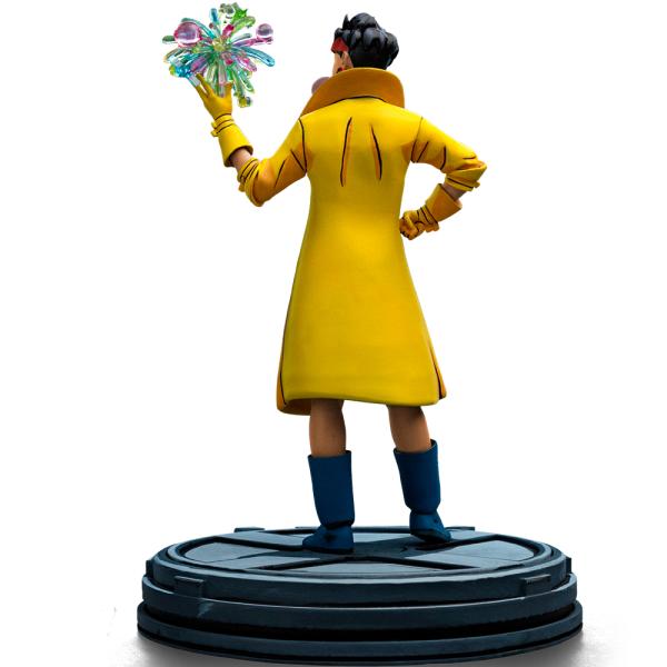 Figurka Jubilee – X-Men ’97 – Art Scale 1/10 od Iron Studios zachycuje mladou čínsko-americkou mutantku v uvolněné a hravé póze. Jubilee levou rukou vytváří jemnou explozi ve tvaru barevného květu ze své plazmoidní energie a zároveň fouká bublinu z žvýkačky. Oblečená je ve svém klasickém outfitu – tmavomodré kozačky a šortky, růžový top a brýle a neodmyslitelný žlutý trenčkot s rukavicemi. Figurka stojí na tematické základně ve tvaru loga X skupiny X-Men a přináší inovativní cel shading stínování, díky kterému postavy vypadají, jako by vystupovaly přímo z televizní obrazovky do reálného světa. Inspirováno animovaným seriálem X-Men ’97 (2024) na Disney+. Postavu vytvořil autor Chris Claremont a výtvarník Marc Silvestri.