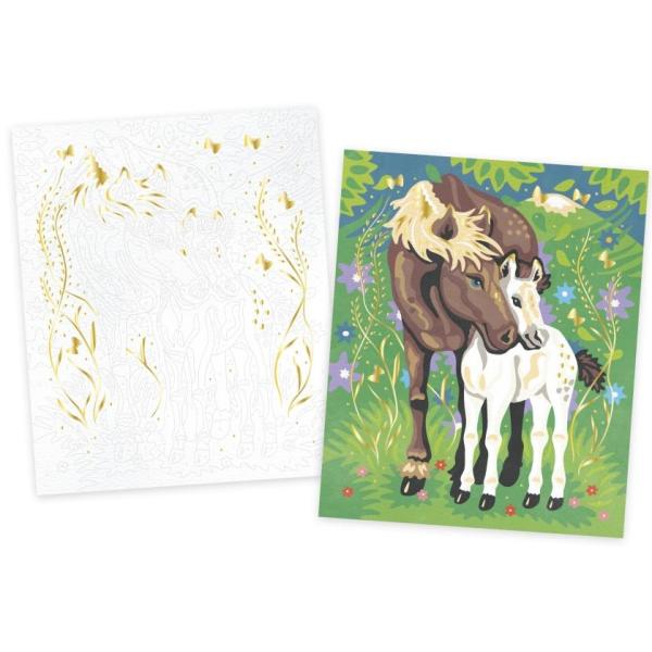 Poznáte malování podle čísel? Tato vzrušující technika umožňuje dětem vytvářet krásné malby jednoduše podle pokynů. Tato kreativní sada obsahuje 2 pěkné obrázky, které mohou děti ve věku 7 a více vyzdobit akvarelovými barvami. Na prvním obrázku je klisna a její hříbě, zatímco na druhém je nádherný kůň. Chytrou součástí je také rám, který lze namalovat na míru tak, aby ladil s jinými obrázky. Paleta 15 akvarelových barev, houba a vodní štětec dělají z této sady originální a ucelenou aktivitu. Vysvětlující brožurka označuje barvu odpovídající každému číslu. Jeden ze dvou obrazů se může pochlubit pozlacenými efekty, které výtvory ještě více zkrášlují. Další praktický nápad: krabice se promění ve stojan, aby byla činnost jednodušší! Děti si při této praktické umělecké a řemeslné aktivitě rozvinou své jemné motorické dovednosti a trpělivost. Každý obraz je zabaví na dobré 3 hodiny. Malování podle čísel nejvíce připomíná omalovánky, jak je známe ještě ze školky. Samozřejmě, že ne úplně stejné. Místo barevného vzoru, který byste měli obkreslit, dostanete jen plátno s očíslovanými ploškami. Každé číslo odpovídá konkrétní barvě, kterou použijete k vybarvení dané plošky. Zní to jednoduše? Ano – malování podle čísel je opravdu tak jednoduché! Jednoduše se držíte rozpisu podle čísel, malujete na šablonu a postupně se kocháte tím, jak Vám pod rukama vzniká krásně barevný obraz. Jde vlastně o dobrodružství, kdy z původně bezbarvého plátna s nějakými čarami a čísly vznikne trpělivým úsilím opravdový obraz, který se nebudete stydět pověsit jako dekoraci do dětského pokoje. Obsah: paleta s vodovými barvami, plnitelný štětec, 2 obrázky na vymalování (1 se zlatým potiskem), rámeček. Kreativní sada Janod rozvíjí a podporuje tvoření, dovednost a představivost u dětí. Kreativní hračky pro děti nezabírají moc místa, jsou vhodné na cesty i na doma, ve zdraví i nemoci a zabaví děti na dlouhé hodiny. Tvoření různými technikami podporuje soustředění a koncentraci, přirozené zkoumání a výtvarné schopnosti. Rozměry balení: 19,5 x 0,1 x 23,5 cm Doporučený věk: 7+