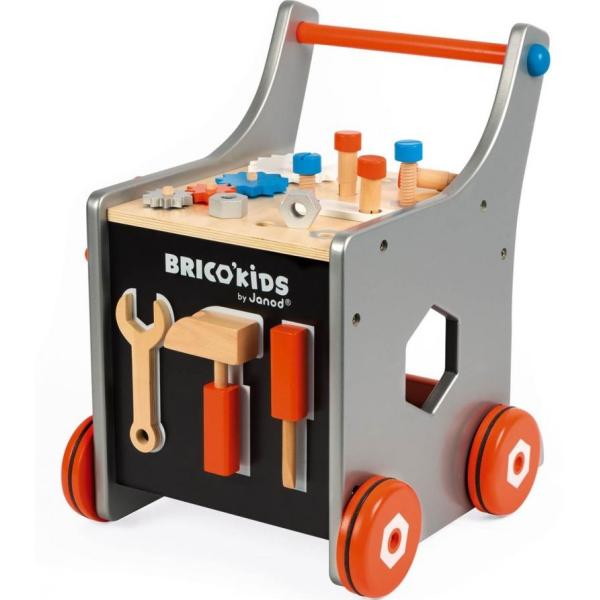 Váš malý mistr bude mít nyní veškeré nářadí na správném místě! Vozík lze zabrzdit tak, aby děti mohly bezpečně kolem něj mistrovat. Dřevěné chodítko a zároveň vozík s nářadím obsahuje: magnetické nářadí – kladivo, šroubovák…
